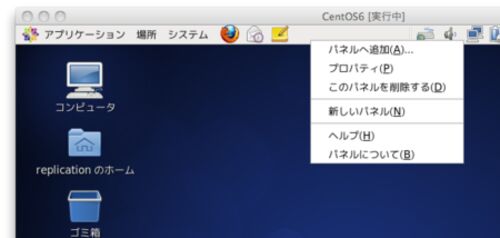はじめに このエントリでは、CentOS 6.0で上部にあるメニューバーを誤って削除してしまった場合に、元に戻すための対処方法について書いています。 №1082 メニューバーが表示されなくなった - Web Patio - CentOSで自宅サーバー構築 メニューバーを削除して…